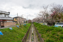 旧袋川の桜並木(写真2枚目との比較、2019年4月5日撮影)