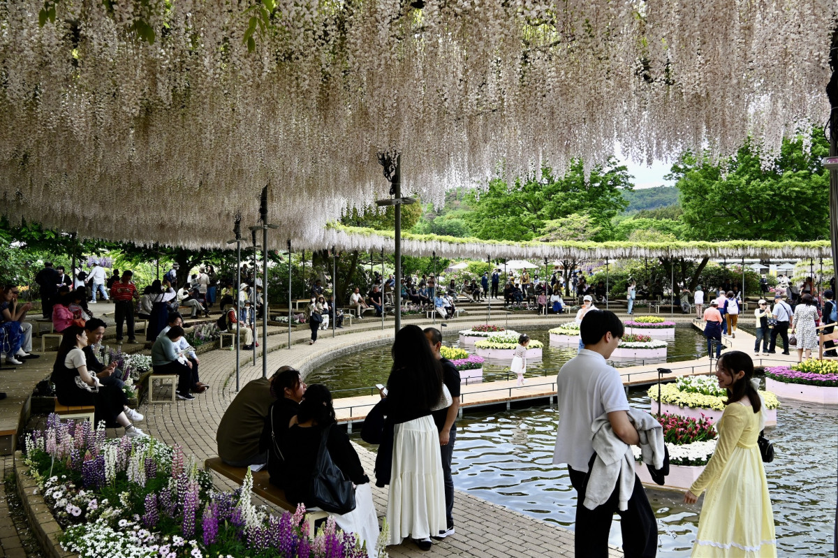あしかがフラワーパーク(足利市迫間町)で現在、350本以上の藤と5000株以上のツツジが園内を彩るイベント「ふじのはな物語~大藤まつり2026~」が開催されている。