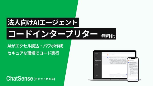 大企業の知的活動を最速にする株式会社ナレッジセンス(本社:東京都港区、代表取締役:門脇敦司、以下ナレッジセンス)は、チャットGTPを活用した企業向け生成AIエージェントサービス「ChatSense」について、人気機能である「コードインタープリター」の利用料金体系を改定し、無料化いたします。 この価格変更は、2026年2月1日より適用されます。