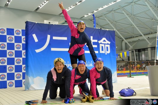 海の世界大会日本代表であり、プール競技でも多くのメダルを獲得が期待される浜地選手 / 慶応義塾大学ライフセービングクラブ