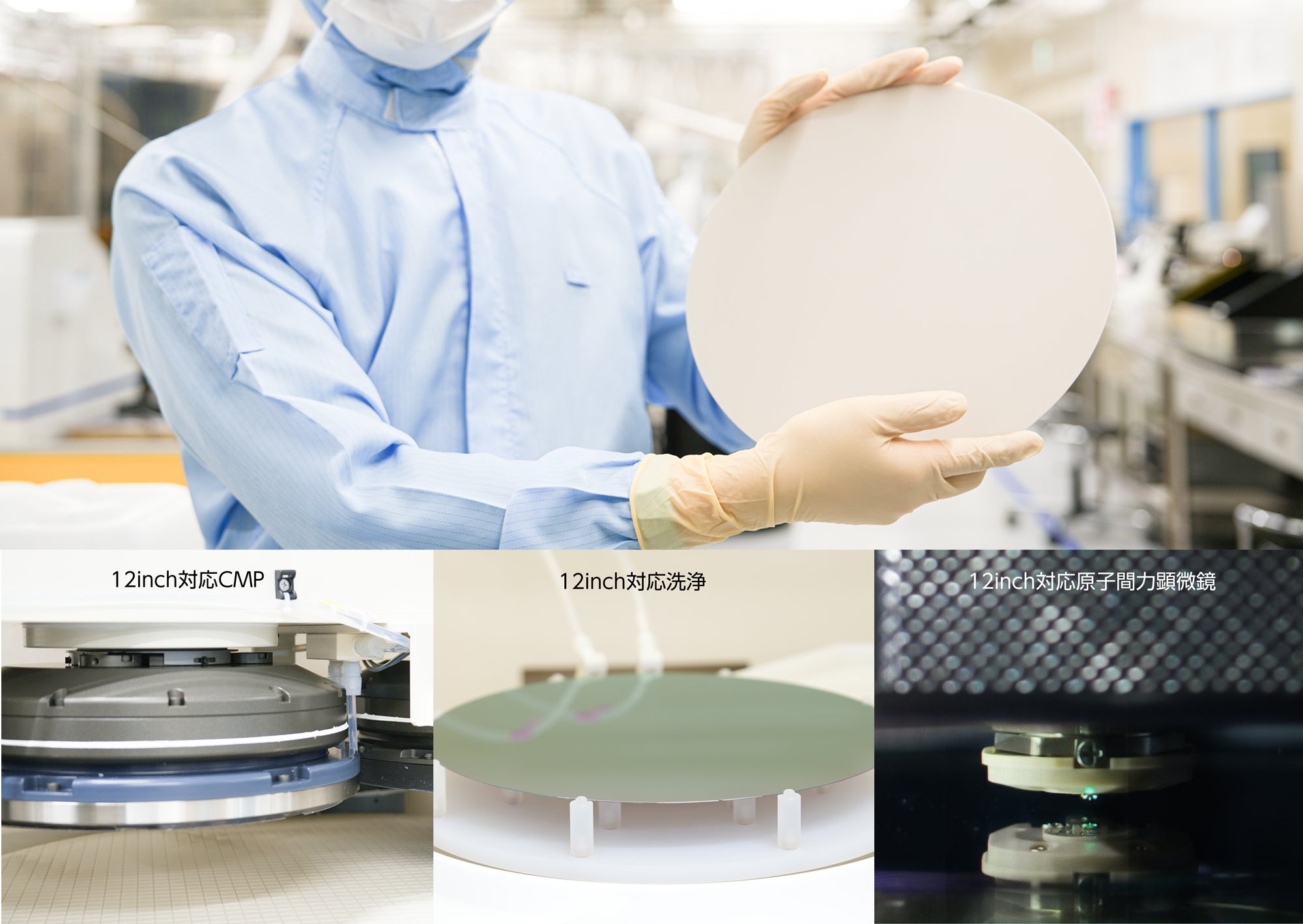 本ラインの構築により、従来の試作案件を中心とした小中口径ウェーハに加え、先端デバイス領域で需要が高まる12インチウェーハのCMP研磨加工体制を大幅に強化いたしました。さらに、「接合(ボンディング)工程」の設備拡充を並行して推進しています。研磨から接合までを一貫して担う「トータルファンドリーサービス」の提供を通じて、次世代半導体製造における技術的課題の解決に寄与してまいります。
