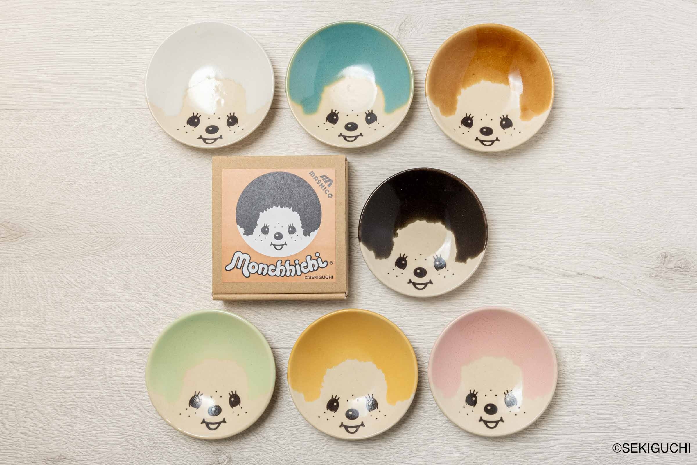 ひとつひとつが個性を持った温かみある風合いを持つ、MASHICO モンチッチ豆皿シリーズ。