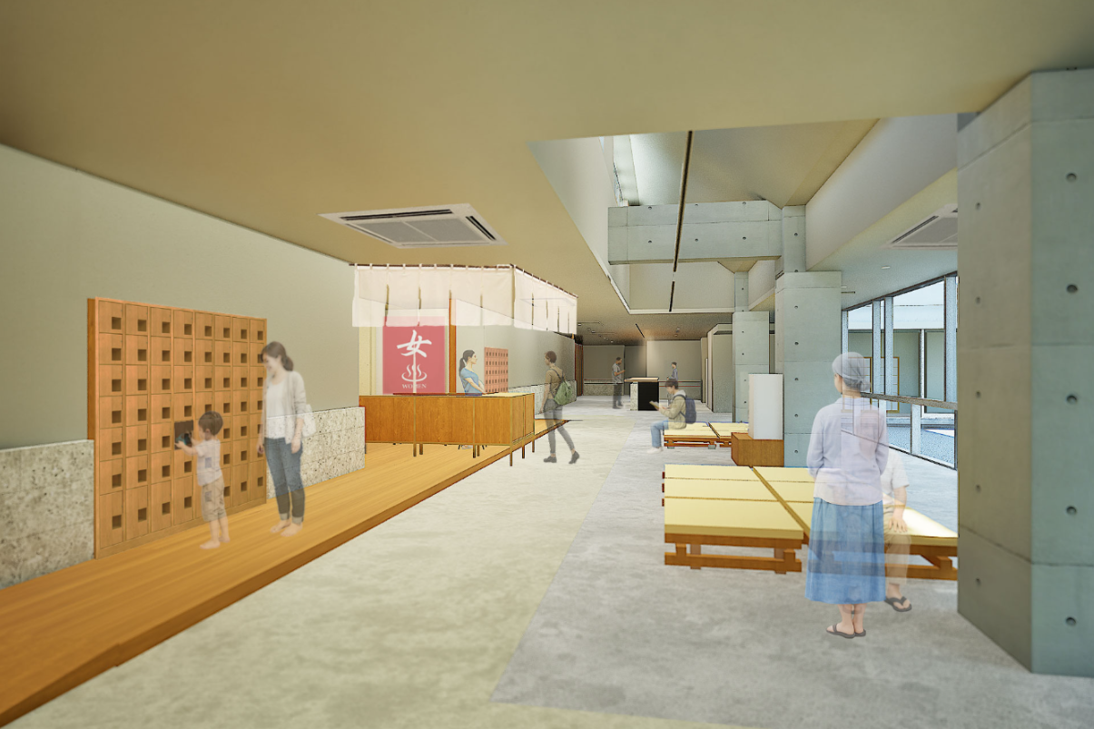 長きにわたり西那須野のまちの人々に愛されてきた「長寿の湯」を再開するにあたり、これまでのあり方を大切にしながら、より多くの人がふらっと立ち寄れる場所となるよう、「まちの縁側」をキーワードにリニューアルしました。
