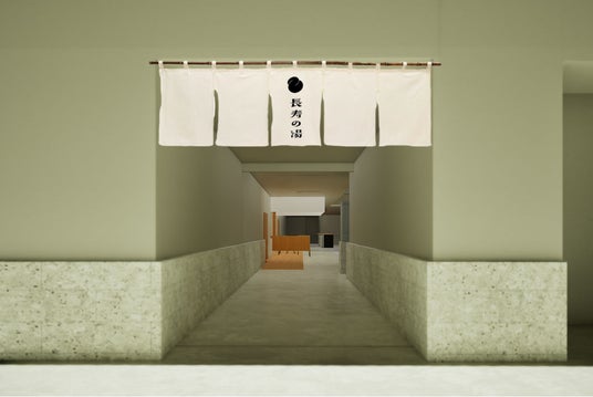 そして長寿の湯は、銭湯という箱の中に閉じるのではなく、西那須野の街の一角に自然に溶け込む「縁側」のような存在であってほしいと思いました。お風呂上がりに瓶ビールを傾ける人、畳の大広間でうとうとする人、縁側でスイカを食べる子ども、待ち合わせをしている人--0歳から100歳までが、それぞれの時間を過ごす小さな街の風景。外と中の垣根がなく、国籍も年齢も関係なく、ただそこにいられる場所です。