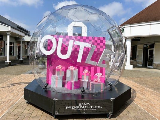 もうひとつのフォトスポットは透明ドーム型で、ドーム内にショッピングバッグやギフトボックスをモチーフにしたオブジェを配し、“お買い物を楽しむ”施設の世界観を表現。出店ブランドの広告スペースとして貸し出しもでき、ブランドの世界観発信や認知向上につながる場としても活用していきます。